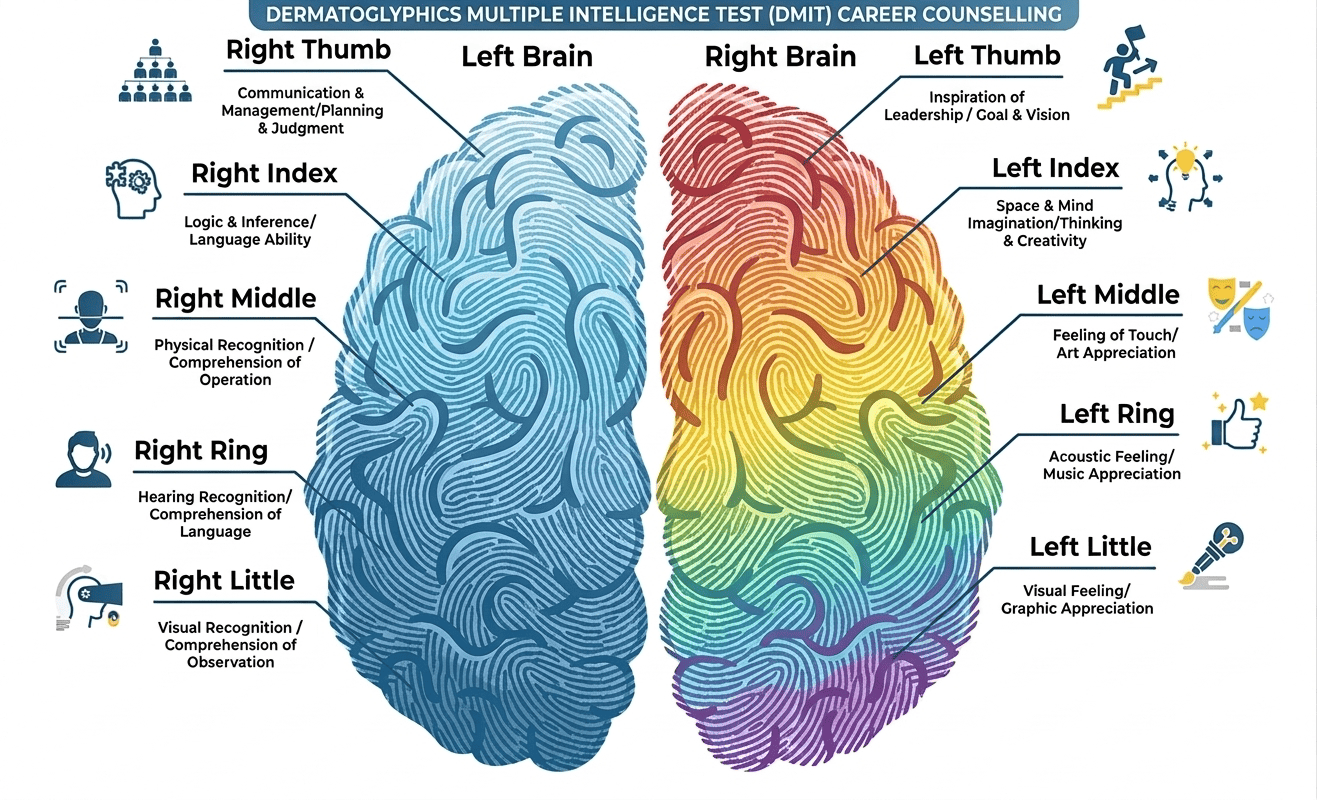 DMIT + Psychometric gives deep understanding of abilities, personality & career fit.